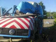 Автобус двигался по маршруту "Талалаевка - Киев". В результате столкновения 34-летнего водителя "Wolkswagen" зажало между сидением и панелью приборов, а 51-летний водитель и два пассажира автобуса "Эталон" получили телесные повреждения.