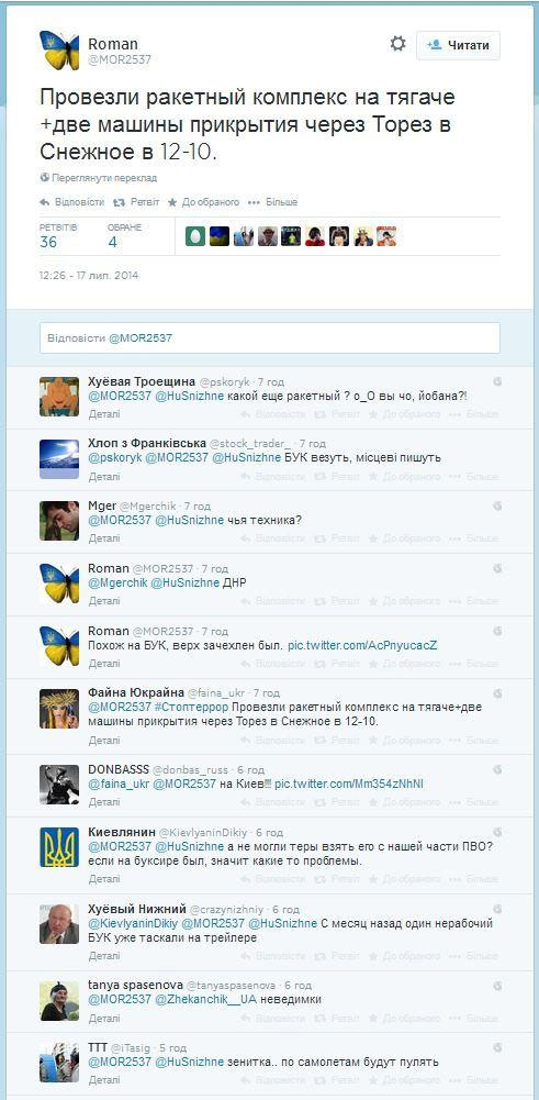 Также стало известно о том, что первые утверждения террористов из „днр” о том, что у них нет такого военного вооружения, чтобы сбивать самолеты на такой высоте, являются полностью лживыми.