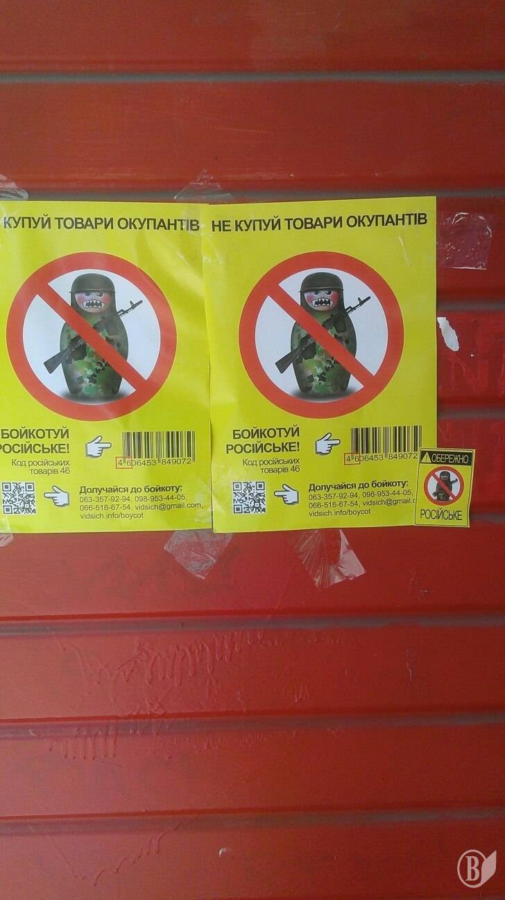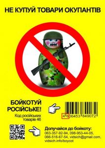 Плакати та листівки з таким зображенням і закликом до бойкоту російських товарів учасники кампанії «Не купуй російське!» поширили на центральних вулицях міста.