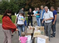 Разом з тим, до автобусу завантажується ще і гуманітарна допомога для наших вояків. Сьогоднішній вантаж, до складу якого входять спальні мішки, карімати, намети, берци, темробілизна, продукти харчування, вода, запчастини, передачі від рідних та близьких, буде доправлений безпосередньо до 41-го батальйону територіальної оборони. Днями на мікроавтобусі до місця дислокації були доставлені гуманітарна допомога та вояки 13-го батальйону, які перебували у відпустці.