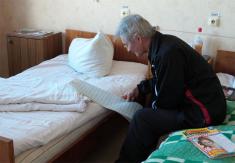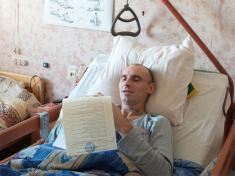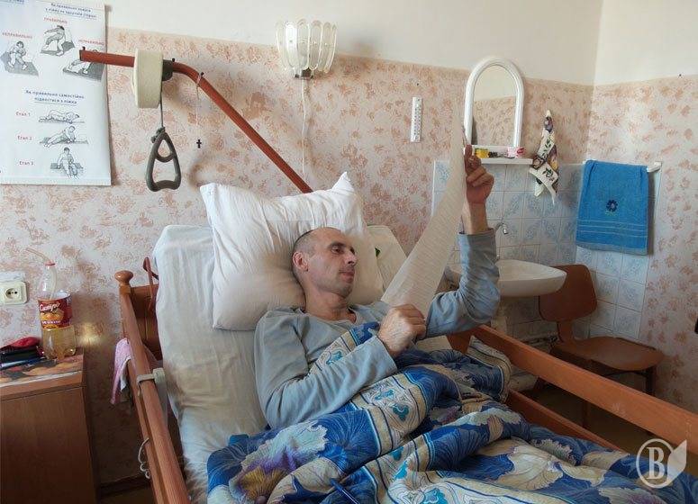 Юрій із Талалаївки лежить у відділенні з важкою травмою. Поруч дружина. Без неї він поки що обійтися не може. Але вірить, що встане і піде. Бо чоловік, який переконаний у перемозі можне подолати все. І хворобу також.