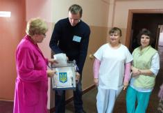 Голосування на виборах до Верховної Ради України і лікарнях відбувається по-особливому. Для тих, хто ходить, на першому поверсі облаштовується місце для голосування.