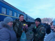 Зустрічаючи своїх героїв батьки, дружини, діти, родичі і друзі «обпікали» армійців гарячими сльозами радості і дарували їм щирі поцілунки, обійми, посмішки.