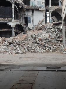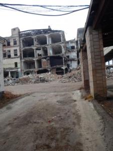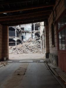 Когда-то это был один из самых мощных мясных комбинатов Украины. Но в настоящий момент там функционирует лишь несколько цехов. Побывав на комбинате, я был шокирован. Подобные пейзажи показывают ежедневно по телевизору, когда рассказывают о войне на Донбассе.