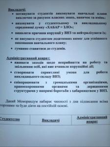 домовились про спільні дії для унеможливлення випадків корупційних правопорушень, у напрямі збільшення рівня відкритості та прозорості навчального процесу, зокрема: