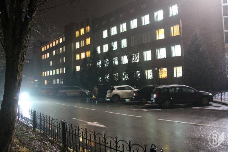 Після 18:00 вийшло три чоловіки з пакетами з центрального входу і трошки вікон в Демарку загасили.
