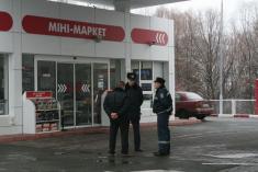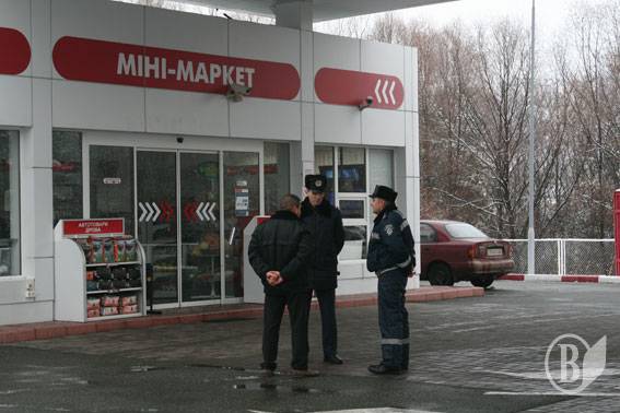 Старший інспектор ДПС ДАІ Олексій Зотов та інспектор ДПС Ярослав Маєстат прибули на заправку і почали розпитували касирку, яка не злякалася озброєного злочинця і натиснула на тривожну кнопку.