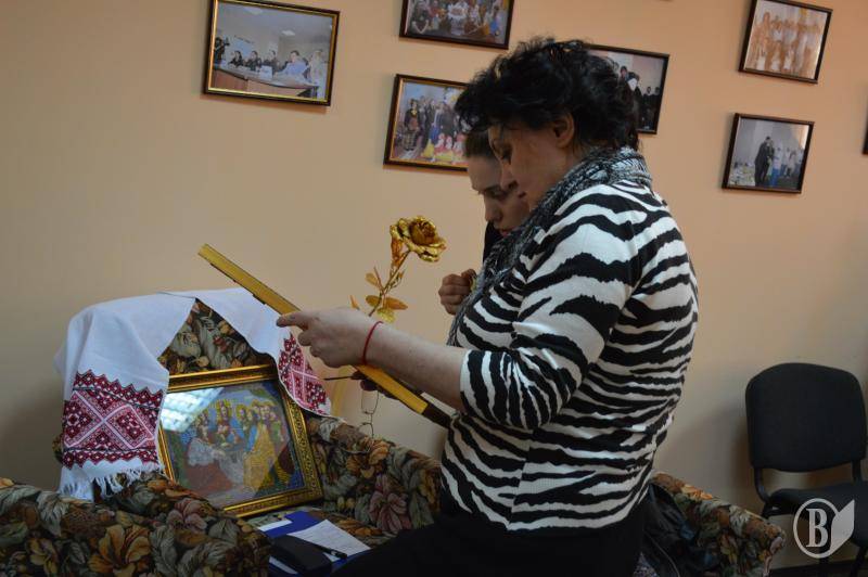 По словам Андрея Кириенка, руководство учреждения уделяет значительное внимание коммунально-бытовому обустройству учреждения: это и ремонтные работы, и предоставление всех необходимых вещей, и продукты, питания, качественные и полезные. Дальше все посетители были приглашены в помещение школы, где осужденные организовали выставку прикладного искусства. Зрителям были представленны вышивки, картины, иконы и другое.