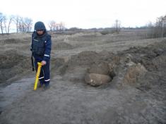 На место события прибыли пиротехники Аварийно-спасательного отряда специального назначения УГСЧС в Черниговской области . Специалисты идентифицировали опасную находку, как фугасную авиационную бомбу ФАБ-250 времен войны.