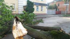 Ночное ненастье в Чернигове с буревалом и ливнем привело к падению деревьев и обрыву проводов на улицах города.