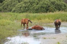 Не удалось отснять момент, когда конь лег в воду и то ли от удовольствия, то ли от блаженства в жару – бил копытом по воде. С минуту! Я в это время выливал воду из ботинка, который впускает воду через верх и не выпускает назад