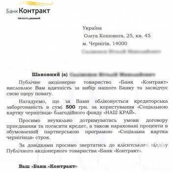 В частности, в почтовые ящики владельцам соцкарточек массово вбрасывают именные письма от киевского банка «Контракт».