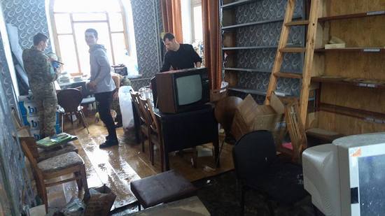 «Убытки устанавливаются. На призыв Сергея Зосименко ("Общественное ТВ") отозвались волонтеры, которые в настоящий момент спасают книги, которые еще можно сохранить. "Кобзарь, Лина - все пропало", - написал в Фейсбуке Сергей Зосименко.