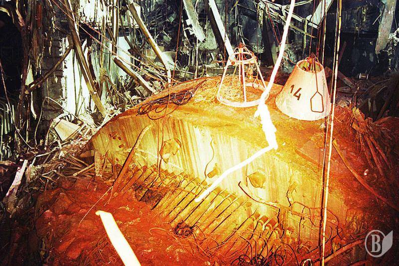На фото – пылающий реактор, крышка реактора, остатки активной зоны реактора под «укрытием», так называемая «слоновая нога» и тому подобное.