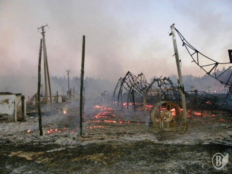 В результате пожара уничтожены кровли 5 овощехранилищ по всей площади, 2 металлических ангара и четыре единицы техники, из них два погрузчика и два грузовых автомобиля.