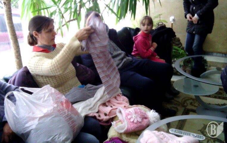 Волонтеры уже привозят собранные вещи прямо в гостиницу. Много детских костюмов, свитеров. Сработали оперативно.
