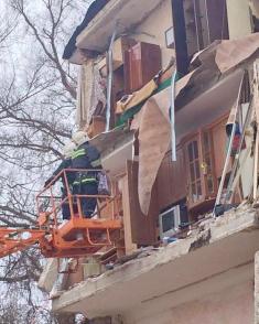 Спасатели вынимают вещи из комнат разрушенного общежития. ФотоФакт