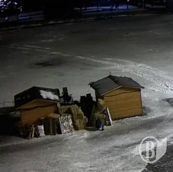 В Інтернеті з’явилося відео нічного підпалу торговельного будиночка на Красній площі з камер спостереження.