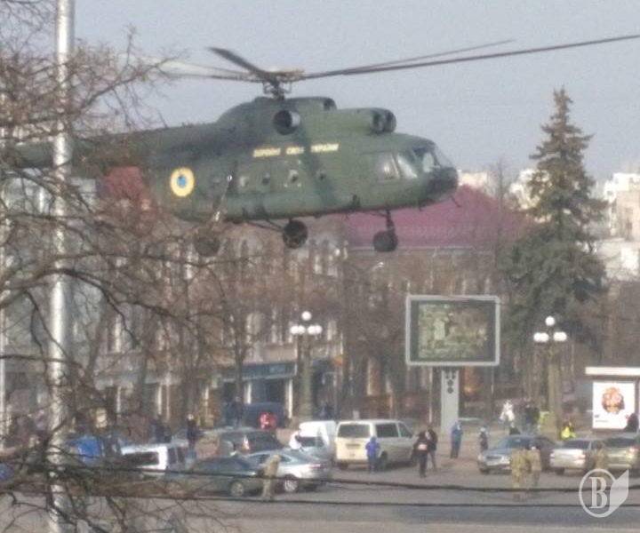 На Красну площу в історичному центрі Чернігова щойно приземлявся гелікоптер, схожий на військовий Мі-8.
