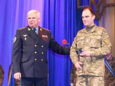 Сергій Дроздов (ліворуч від нас) під час урочистостей у драмтеатрі. Фото люб'язно надане Медіа-центром Міністерства оборони в м. Чернігів