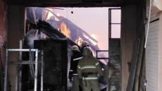 Приміщення складу броньованих дверей, орендоване одним з місцевих приватних підприємств, горіло в Чернігові вчора, 4 квітня, на вул. Шевченка, 162-а. Пожежа швидко розповсюдилась дерев'яним дахом будівлі на загальну площу 1500 кв.м.
