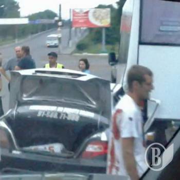 Очевидці в соцмережі повідомили, що водій таксі протаранив маршрутку, яка рухалась в бік вокзалу. Працівники швидкої допомоги та небайдужі люди витягнули постраждалого пасажира з автомобіля.