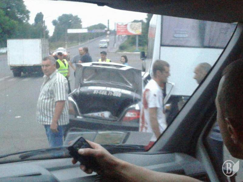 Очевидці в соцмережі повідомили, що водій таксі протаранив маршрутку, яка рухалась в бік вокзалу. Працівники швидкої допомоги та небайдужі люди витягнули постраждалого пасажира з автомобіля.