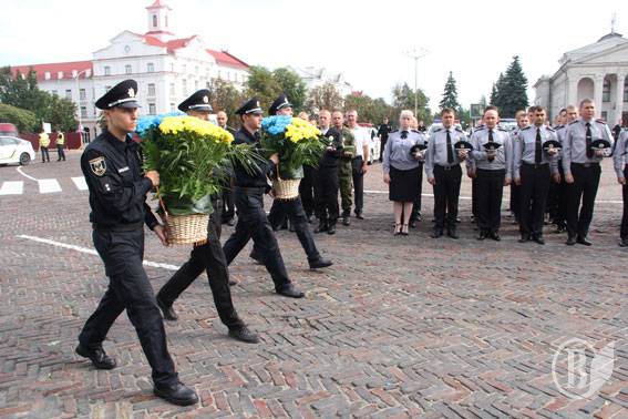 Урочисті заходи з нагоди другої річниці Національної поліції на Красній площі в Чернігові розпочали з хвилини мовчання.