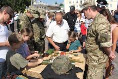 На площі чернігівці могли оглянути виставку службового автотранспорту, зразків озброєння та амуніції потримати в руках зброю та приміряти елементи обмундирування.