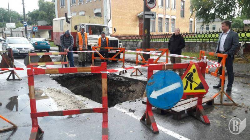 Як прокоментували в управлінні житлово-комунального господарства міської ради, імовірною причиною стало підмивання грунту водою, яка потрапила під асфальт через колодязь телефонної мережі. Зараз фахівці з'ясовують причини та всі обставини події більш точно. Після усунення причин будуть розпочаті відновлювальні роботи.