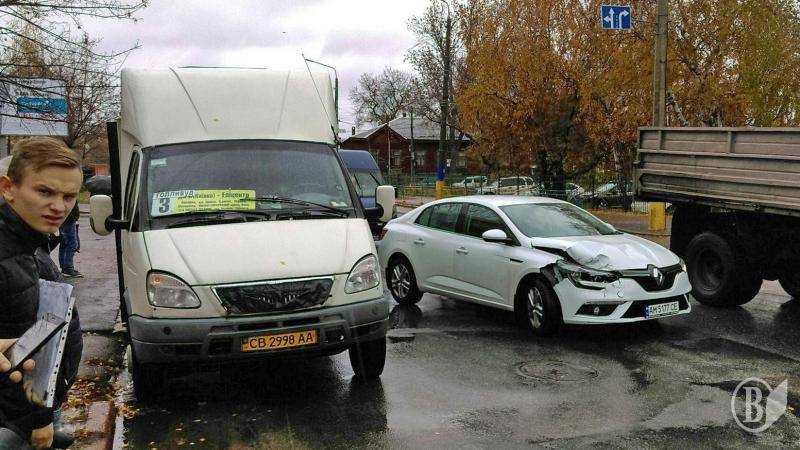 На вулиці Київській в Чернігові, навпроти Адміністративного суду (що в будівлі школи №8), водій допустив зіткнення з маршруткою «Рута» третього міського маршруту.