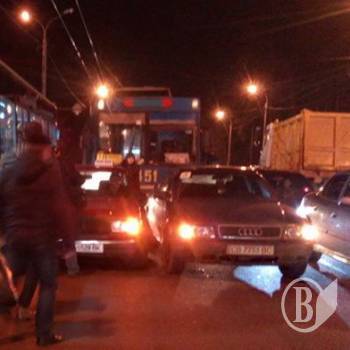 На вулиці приблизно о пів на 18 годину зіткнулися таксі, тролейбус і легковик.