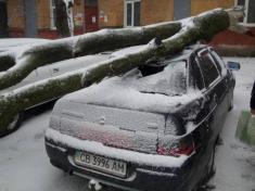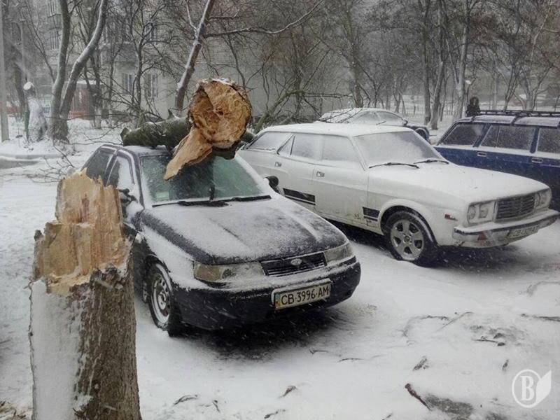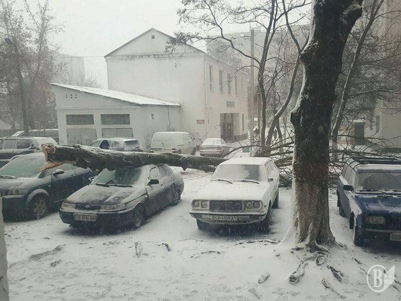 Сьогодні, 18 грудня, дерево впало і пошкодило легковик ВАЗ В Чернігові у дворі будинку на проспекті Миру, 55.