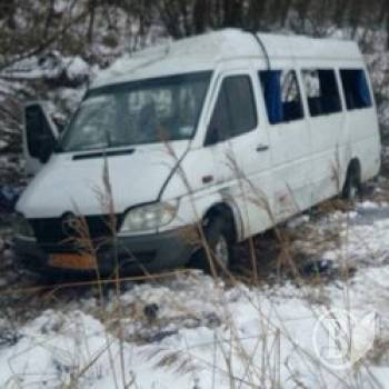 Цей фургон, у якому перебувало 11 пасажирів, на автодорозі Ічня-Томашівка потрапив у сніговий замет.