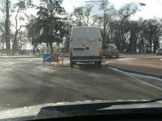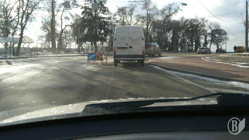 В Чернігові на перехресті вулиці Єлецька з просп. Миру чи то дорожники, чи комунальники виставили дорожні знаки так, що вони направляють транспорт в об’їзд на зустрічну смугу.