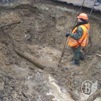 У зв'язку з осипанням грунту при проведенні аварійно-ремонтних робіт на вулиці Гетьмана Полуботка, 33 та значною кількістю комунікацій, станом на 16:00 годину не вдалося знайти пошкодження на трубі діаметром 200 мм.