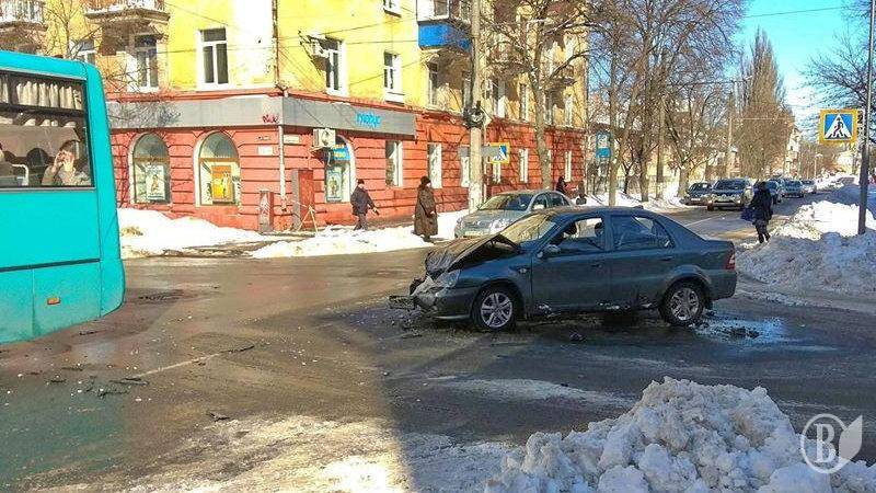 В одному випадку на сумнозвісному перехресті з вул. Гонча (раніше – Горького) водій легковика Chevrolet Lacetti необачно виїхав з другорядної вулиці на головну і вдарив фургон, схожий на Mercedes Sprinter.