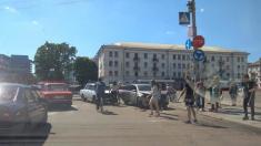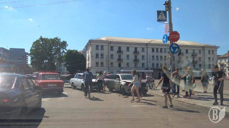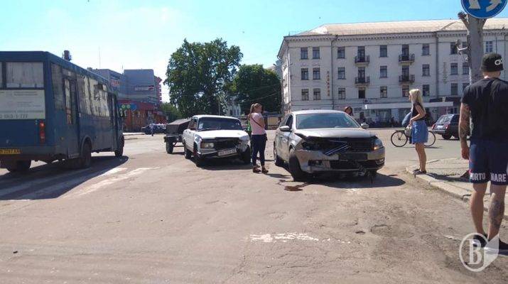 В центрі Ніжина, на площі Івана Франка 4 червня трапилась ДТП за участі двох легкових автомобілей – ВАЗ-2107 з прицепчиком та Volkswagen.