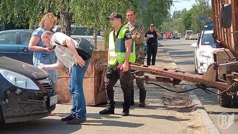 Точніше, не із самим сміттєвозом, а баком для сміття на його маніпуляторі.