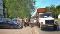 Сьогодні близько 11 години на вул. Мазепи біля перехрестя з Ремісничою стався прикрий інцидент між легковим авто, орієнтовно Opel, та сміттєвозом.