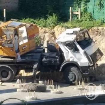 Як повідомляють очевидці, підйомний кран на шасі «МАЗ» впав у котлован.