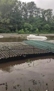 Залито по самі дахи навісів, а легковики, напевно, залито так, що їх і не видно – визирають з води лиш дахи порівняно високих мікроавтобусів.