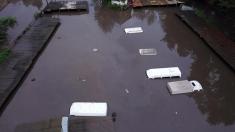 У Чернігові під час дощу 29-30 червня залито паркувальний майданчик у рівчаку на початку вул. Декабристів.