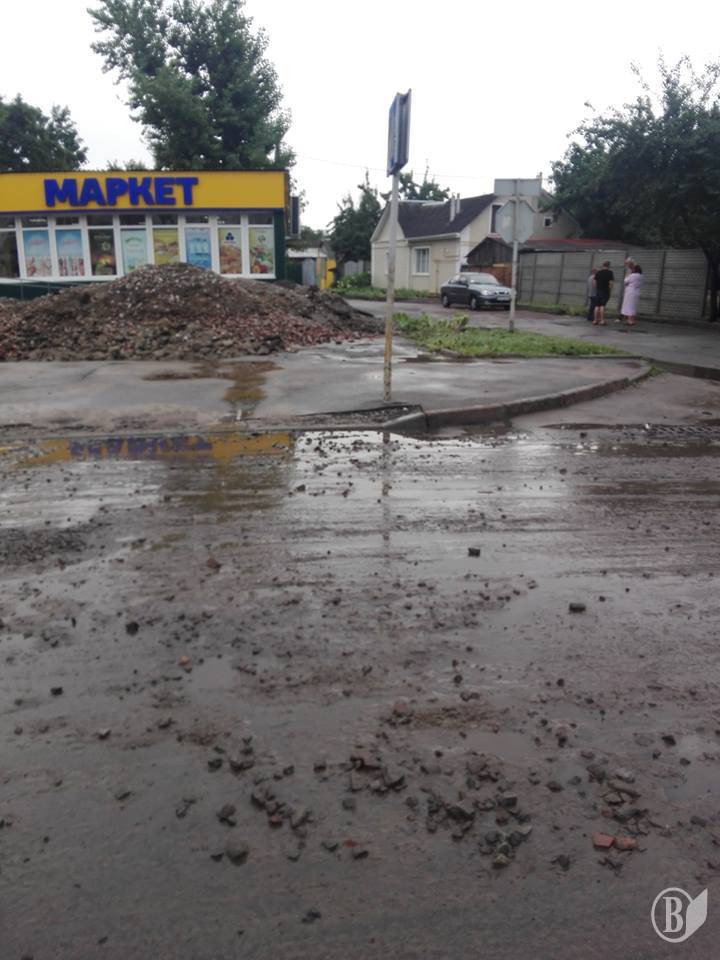 Дощ «змив» асфальт у приватному секторі в районі «Електрону»