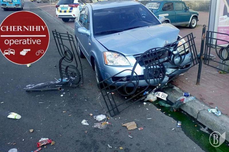 Рано-вранці у неділю, 19 серпня, китайське авто на зустрічній смузі проспекту Перемоги біля поштамту в'їхало в огорожу тротуару.