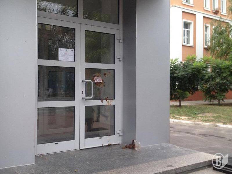 Вхідні двері (зовнішні надвірні) до офісу комунального телебачення «Новий Чернігів» 23 вересня виявилися обгиджені лайном.