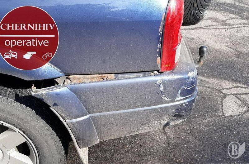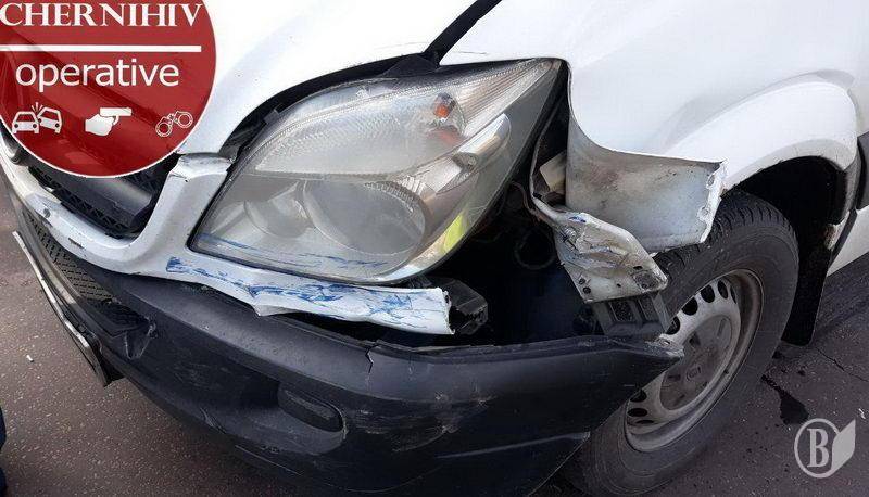 У Чернігові на вул. Козацька не розминулися синій позашляховик і фургон Mercedes Sprinter, яким возять людей маршрутом Чернігів–Київ.