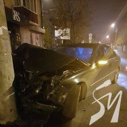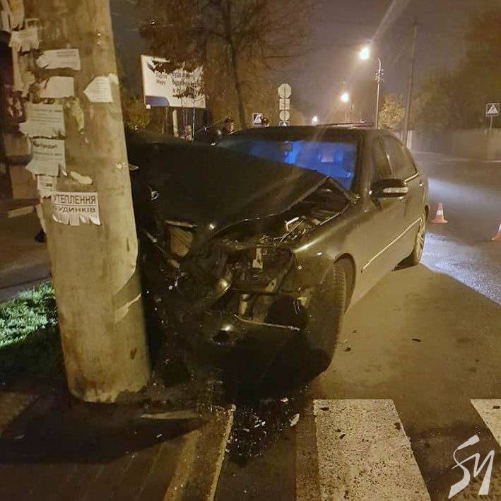 Ввечері 31 жовтня в Чернігові водій вгатив легковиком Mercedes у стовп на вулиці Гетьмана Полуботка відразу після повороту на неї з вулиці Пушкіна.