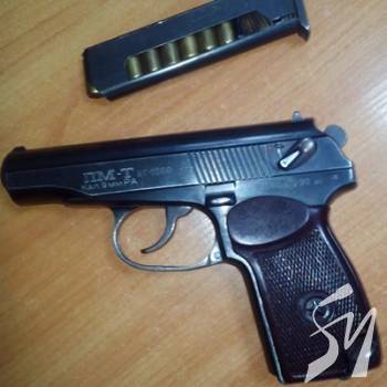 В подальшому серед особистих речей водія, 32-річного громадянина України, виявлено пістолет травматичної дії «ПМ-Т» та 8 набоїв до нього.