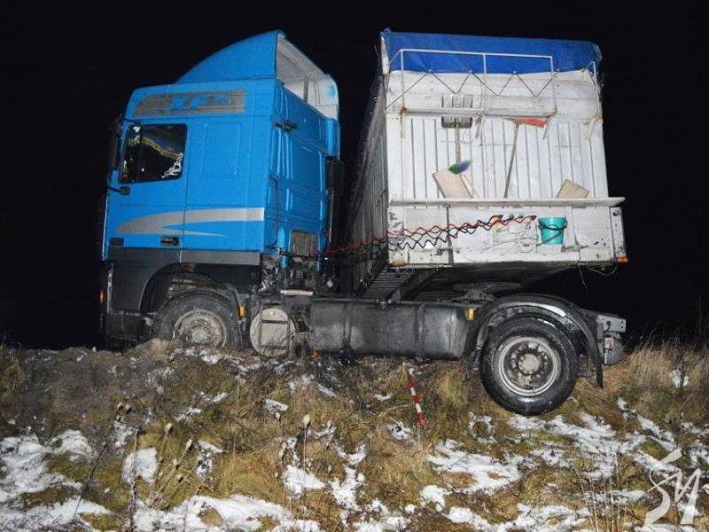 Вантажівка перегородила одну смугу руху. А пара коліс втратила опору, тож виїхати самостійно тягач був не в змозі.